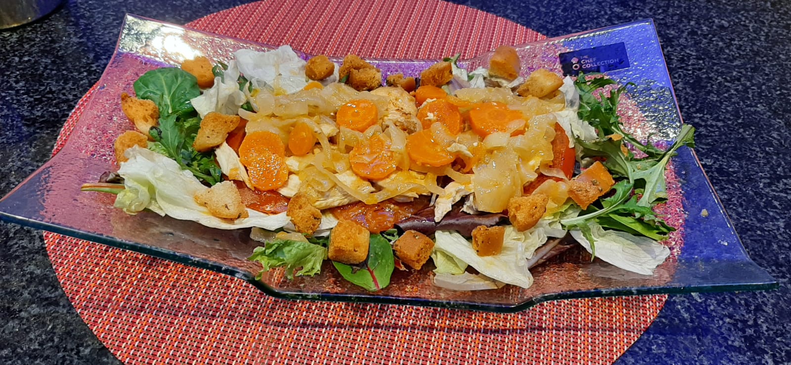 Lechuga, tomate, queso, cebolla caramelizada y salsa chimichurri